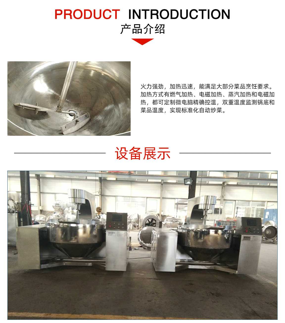 炎炎夏日工人师 傅站在高温锅炉旁不停地翻炒食物,经常累得热得大汗淋漓,容易中暑等症状,所以研发出了自动化的行星搅拌炒锅,代替了传统大锅炒制的弊端,行星搅拌炒锅可根据加热方式不同分为燃气行星炒锅、电磁行星搅拌炒锅、蒸汽行星搅拌炒锅和电加热行星搅拌炒锅四种加热方式。
