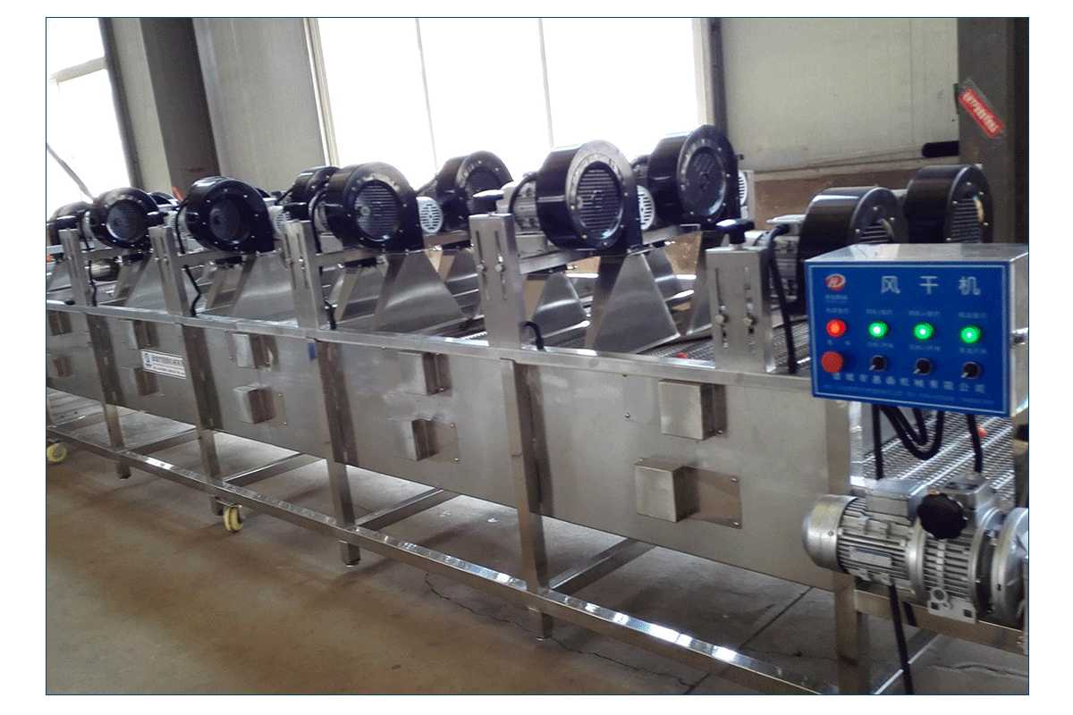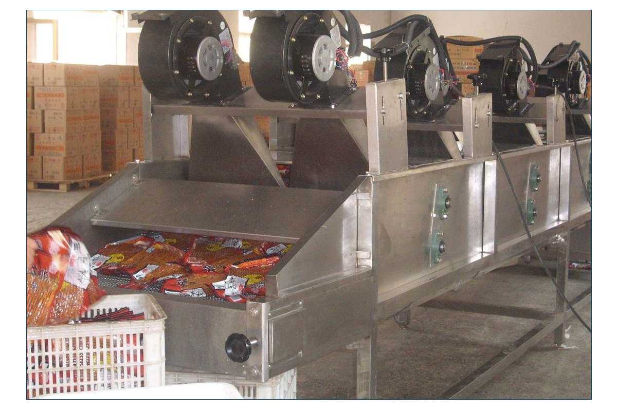风干机与杀菌流水线配套使用,置于杀菌线后部。特别适用于灭菌后的高低温肉制品、蔬菜制品等袋装产品的干燥工作。