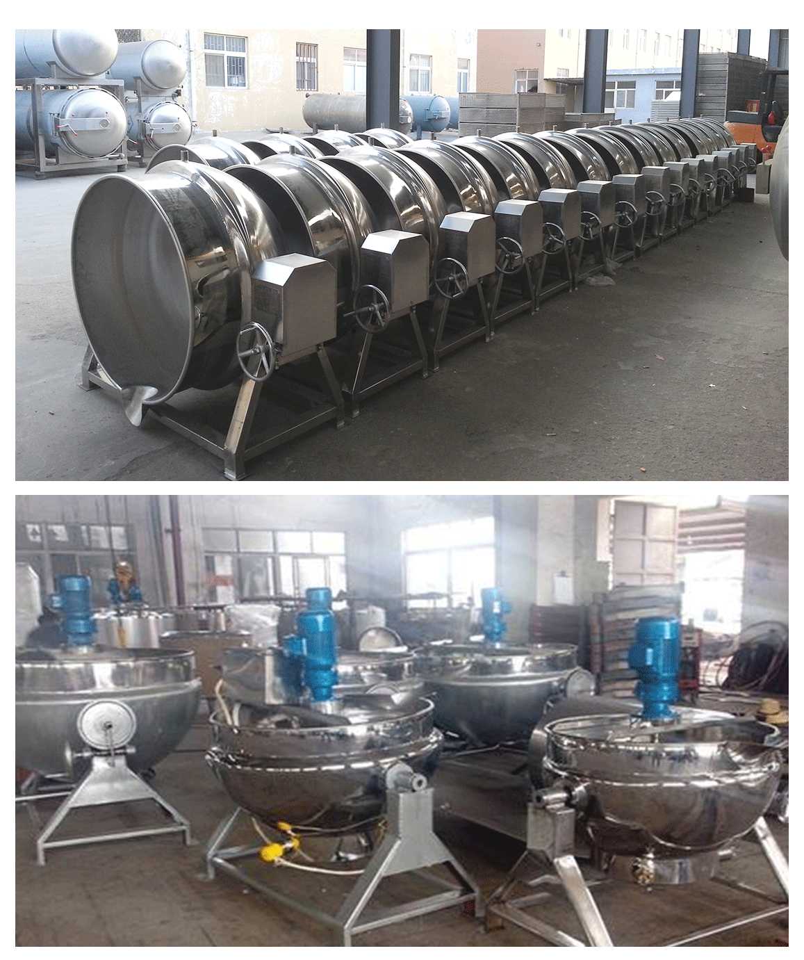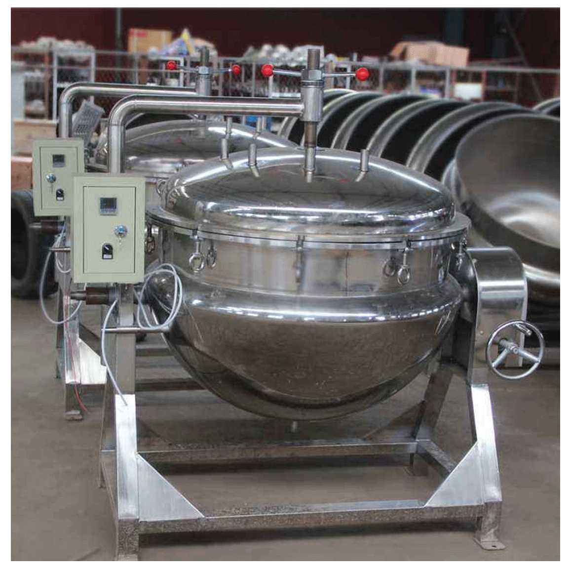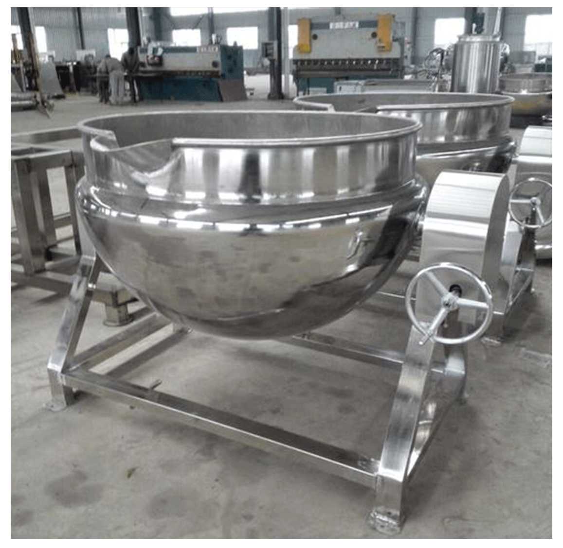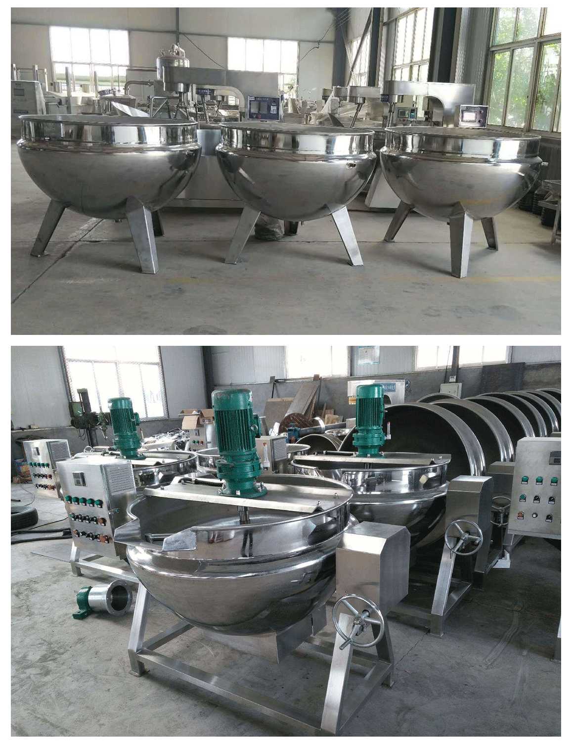 夹层锅又名蒸汽锅、蒸煮锅、夹层蒸汽锅。通常由锅体和支脚组成。锅体是由内外球形锅体组成的双层结构形式,中间夹层通入蒸汽加热。有固定式、可倾式、搅拌式等样式。夹层锅具有受热面积大、热效率高、加热均匀、液料沸腾时间短、加热温度容易控制、外型美观、安装容易、操作方便、安全可靠等特点。夹层锅广泛应用于各类食品的加工,也可用于大型餐厅或食堂熬汤、烧菜、炖肉、熬粥等,是食品加工提高质量、缩短时间、改善劳动条件的良好设备。